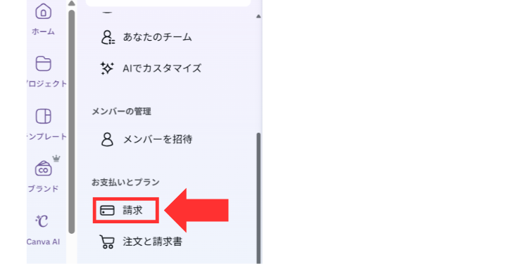 Canvaプロの無料トライアルを解約したいけど、どの画面かわからない。